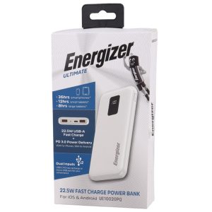 پاوربانک Energizer UE10020PQ با ظرفیت ۱۰۰۰۰ میلیآمپر ساعت و توان ۲۲.۵ وات، گزینهای سبک و جمعوجور برای شارژ سریع است. این مدل دارای درگاههای USB-A و Type-C بوده و از فناوریهای PD و QC پشتیبانی میکند. قابلیت شارژ همزمان سه دستگاه، نمایشگر LED و مدارهای محافظتی در برابر نوسان و حرارت از ویژگیهای کلیدی آن هستند. مناسب برای استفاده روزمره، سفر و مواقع اضطراری.